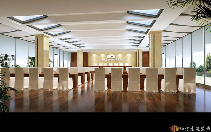 會議室給人以莊嚴肅穆的感覺,全景窗的設計增加了空間的通透感,同時為室內增加了一道亮麗的風景,開會時更加活力十足,不會過于沉悶。